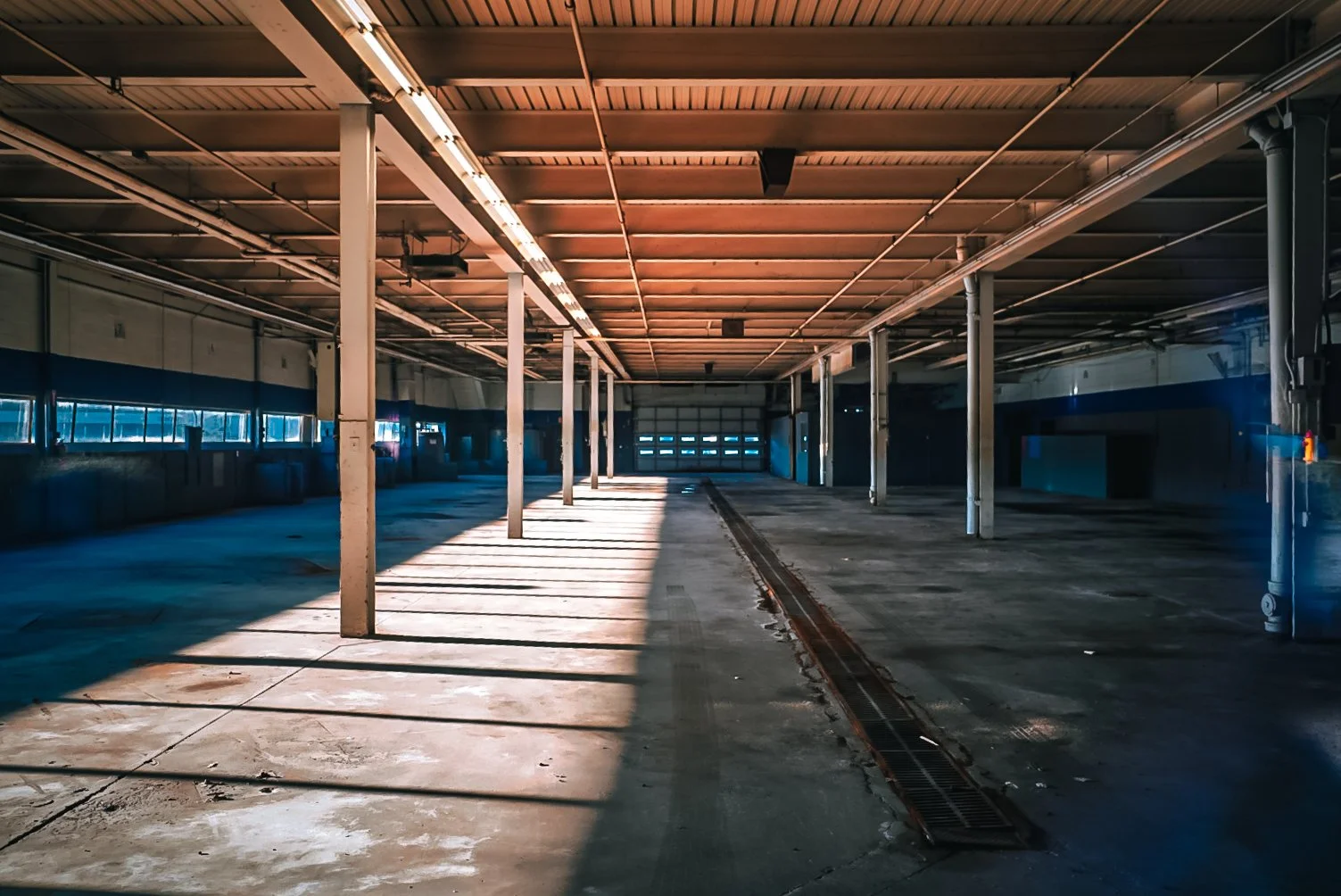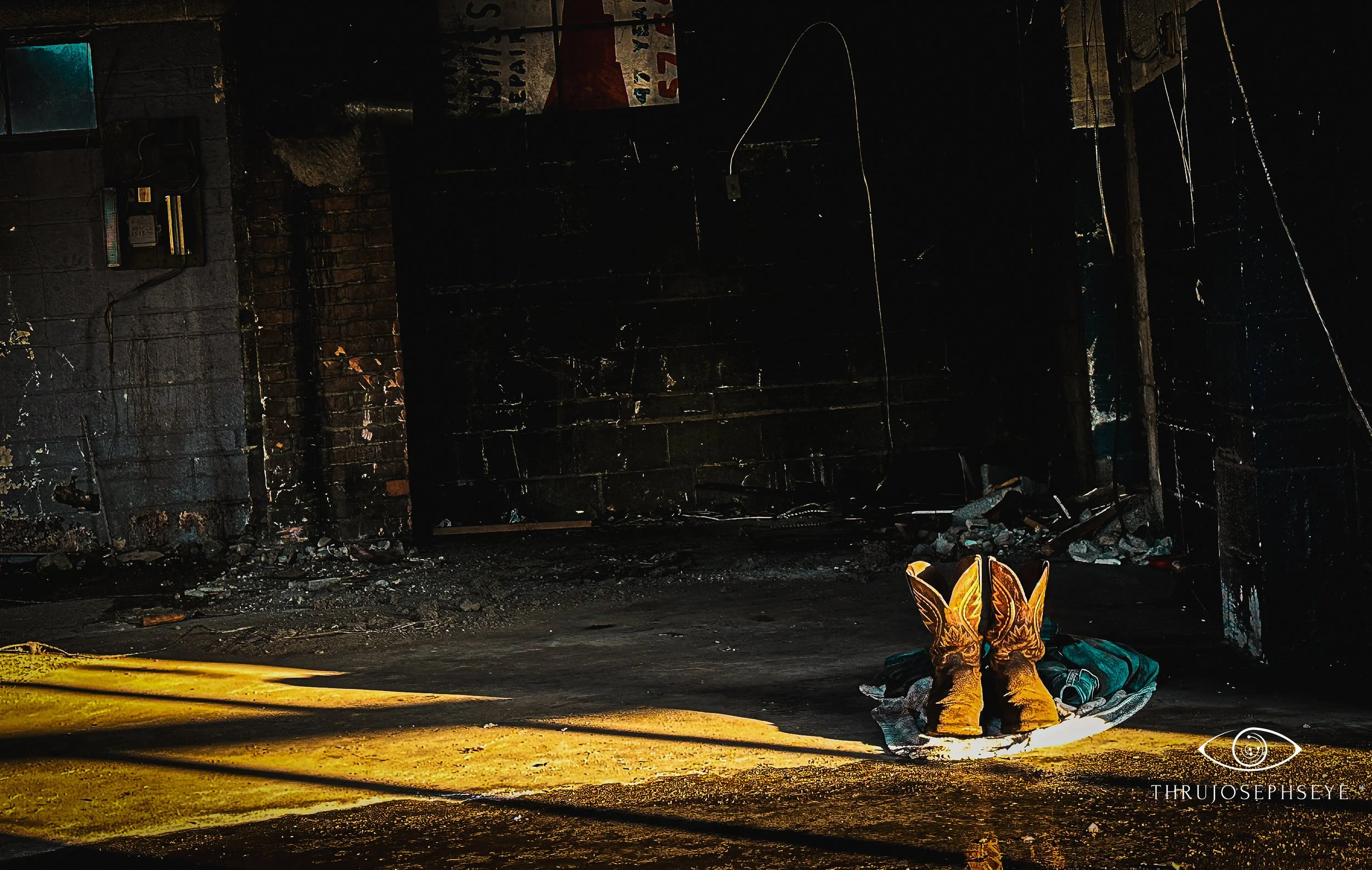 Abandoned boots in an empty service center.
